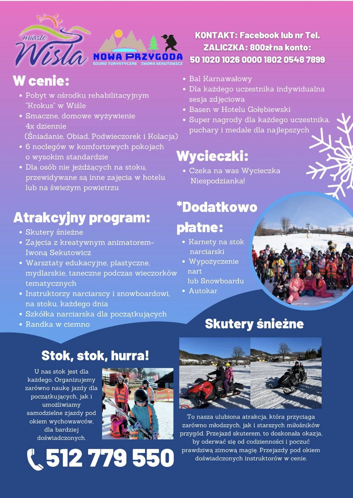 Zapraszamy dzieci i młodzież na wyjątkowy zimowy obóz w Wiśle, gdzie czeka nas masa atrakcji i niezapomnianych chwil! W malowniczym ośrodku Krokus, otoczonym zapierającym dech w piersiach krajobrazem, przygotowaliśmy pełną emocji ofertę.